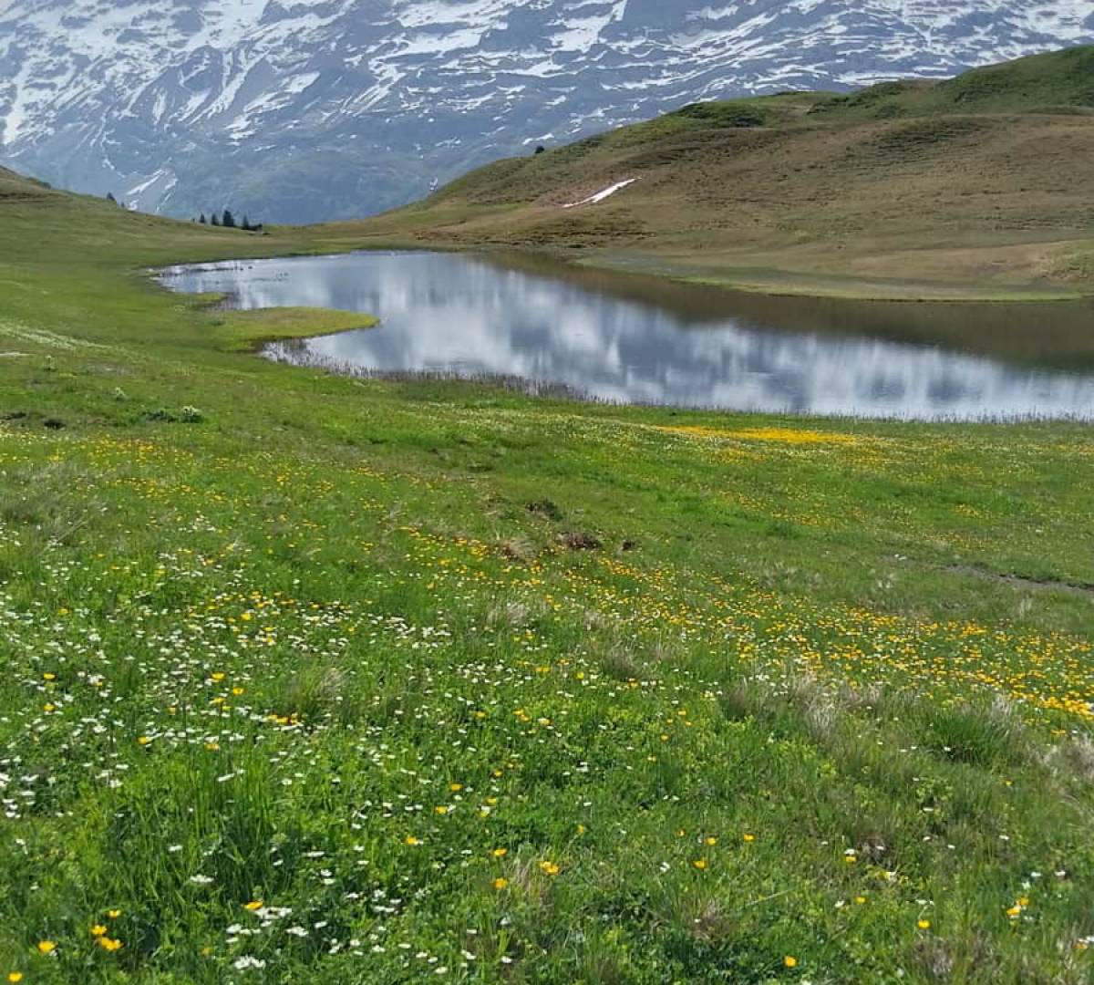 Die Sportlichen hatten eine Wanderung ab Jochpass (2208 m ü. M) hoch zum Schafberggrat (2323 m ü. M) vorgesehen, mussten leider wegen zu viel Schnee das Vorhaben begraben. Eine neu gewählte Route führte sie dann hinab zum Engstlensee (1850 m ü. M) und weiter zum Weiler Engstlen, man betrieb etwas Botanikstudium und stieg dann hoch zum Jochpass.