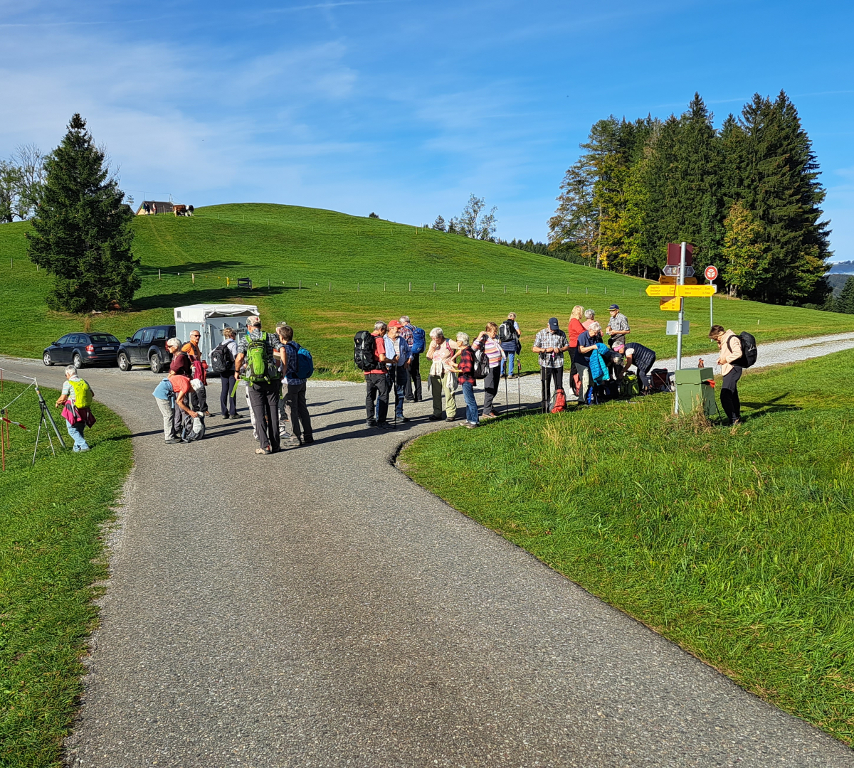 Gut gestärkt beginnen wir mit unserer Wanderung. Gleich zu Beginn geht es aufwärts zur Hohegg und dann wieder abwärts nach Zwislen.