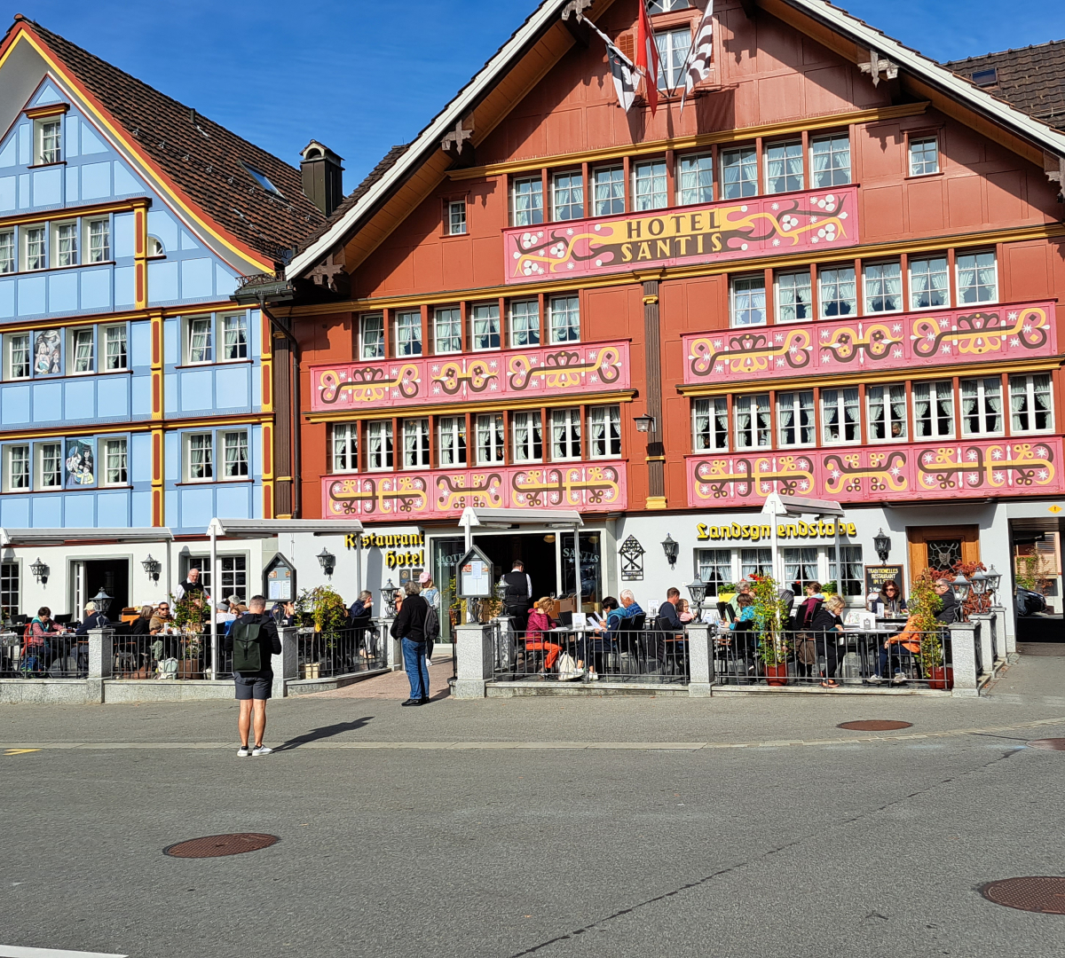 Wir fahren mit der SBB über Zürich HB nach St. Gallen und mit der Appenzeller-Bahn weiter nach Gais (910 m ü M). Nach der Ankunft gehen wir ein paar Schritte zum Startkaffee ins Cafe Böhli.